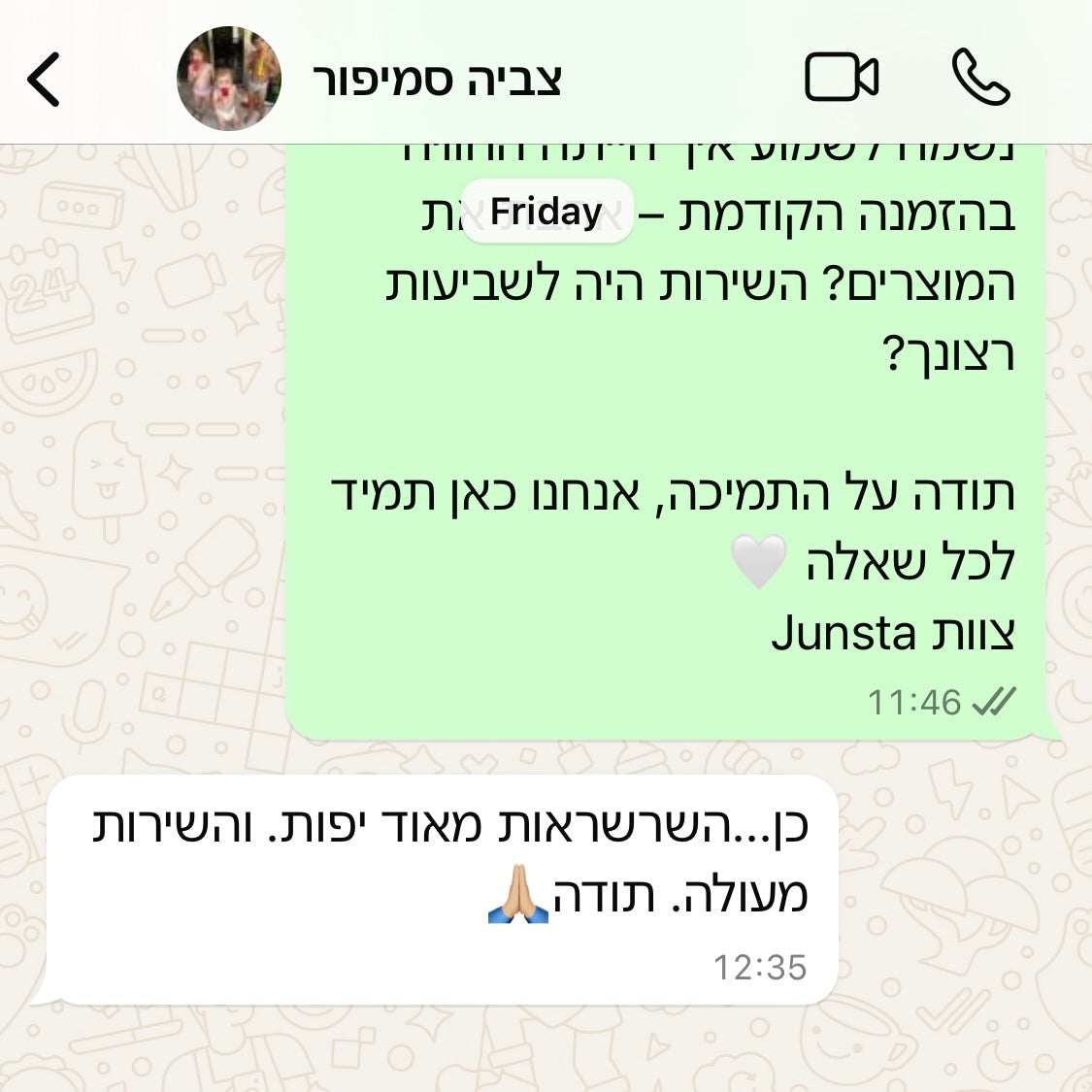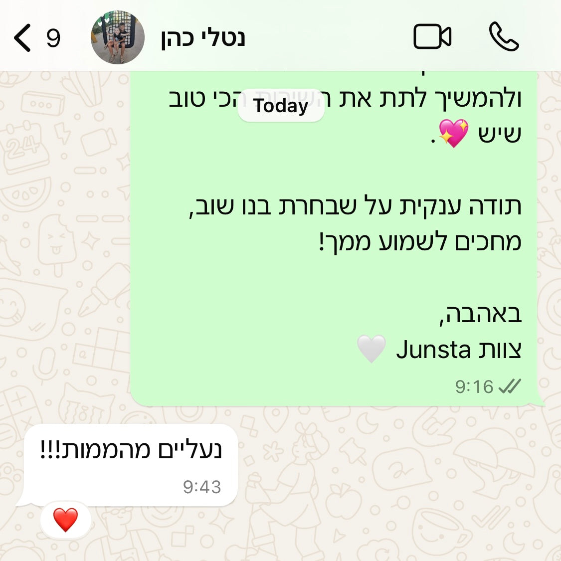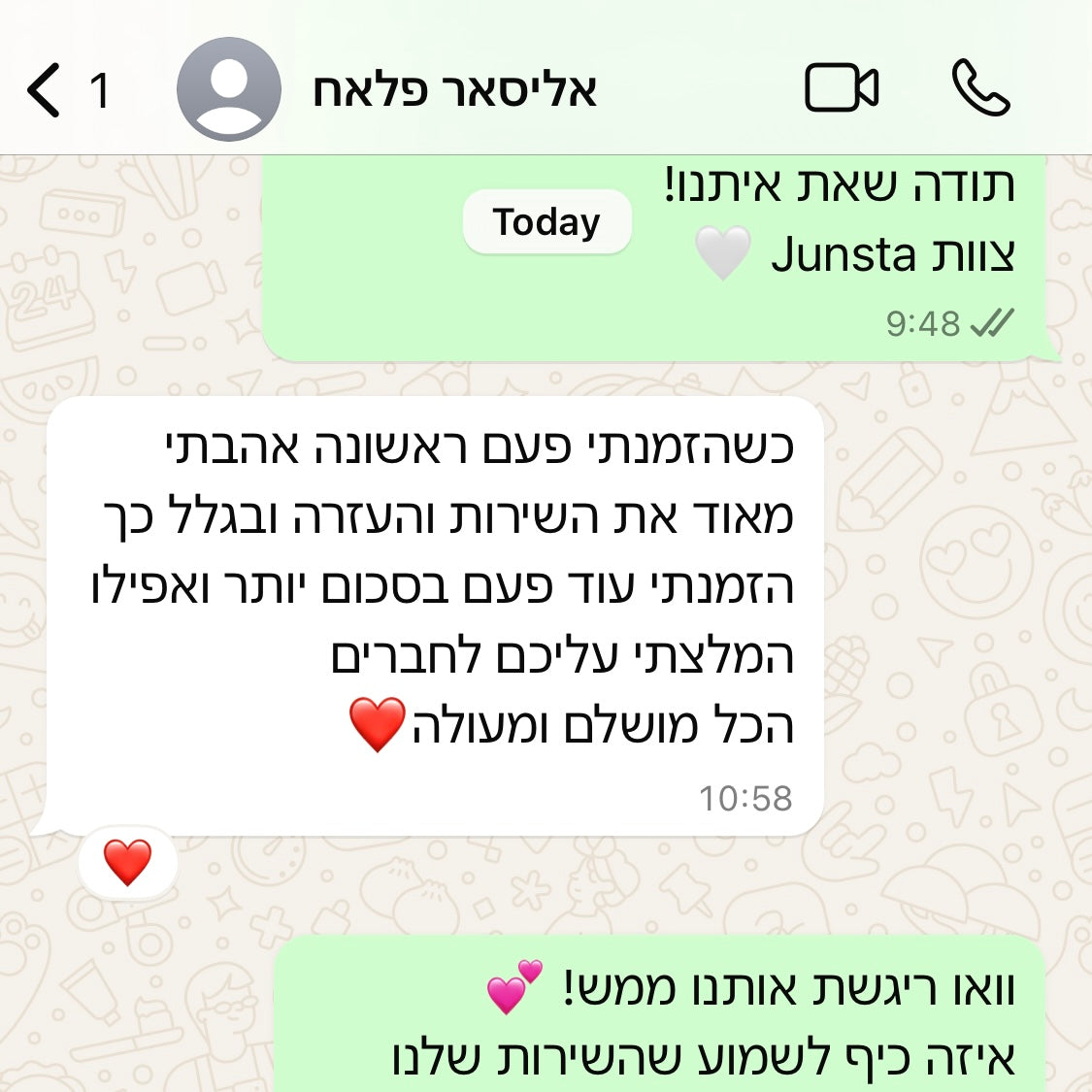 אפשר לפנות דרך צור קשר באתר, במייל info@junsta.com או בוואטסאפ