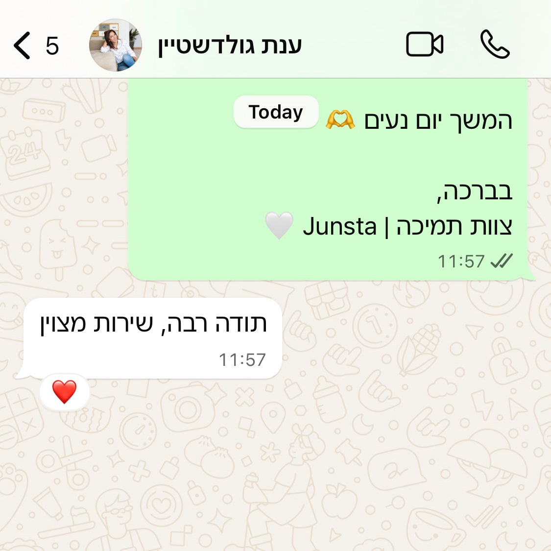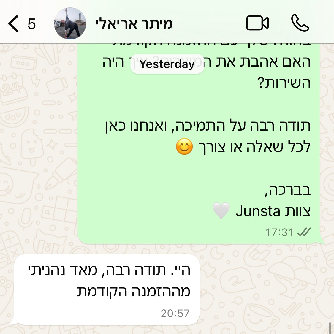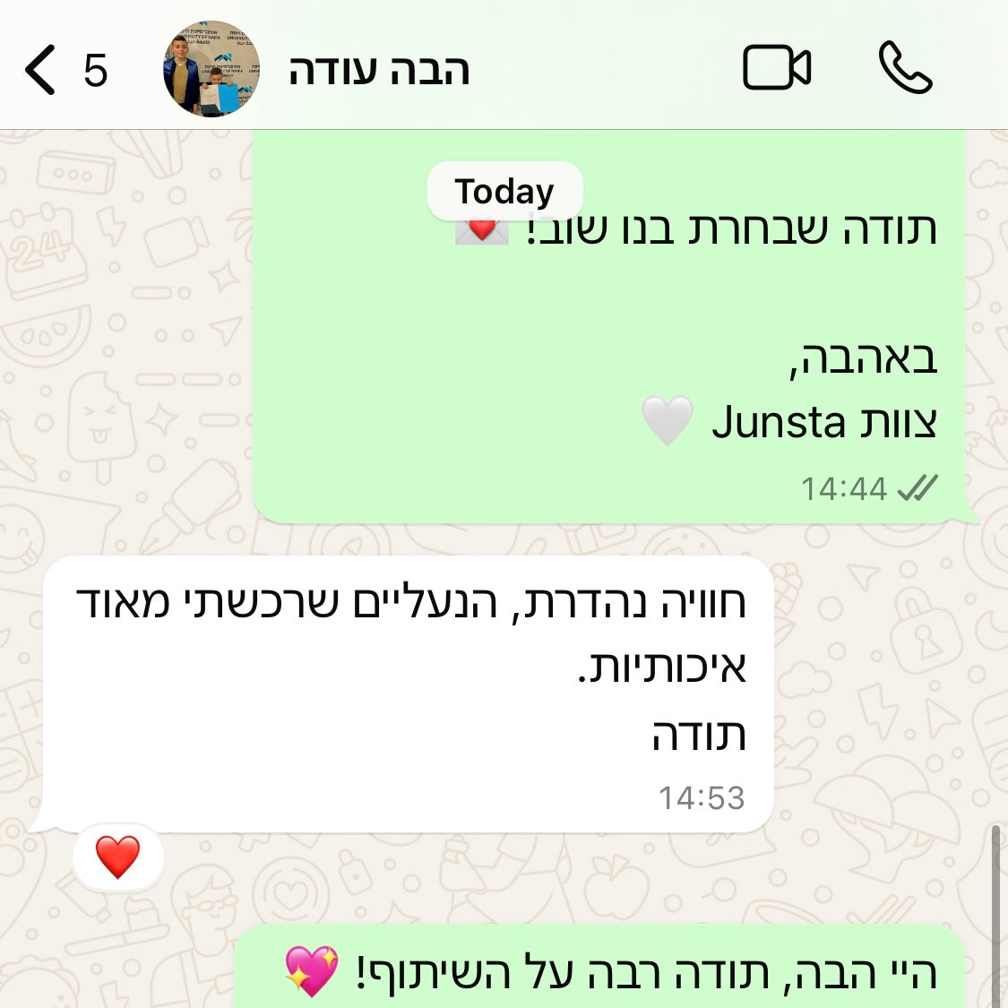 אפשר לפנות דרך צור קשר באתר, במייל info@junsta.com או בוואטסאפ